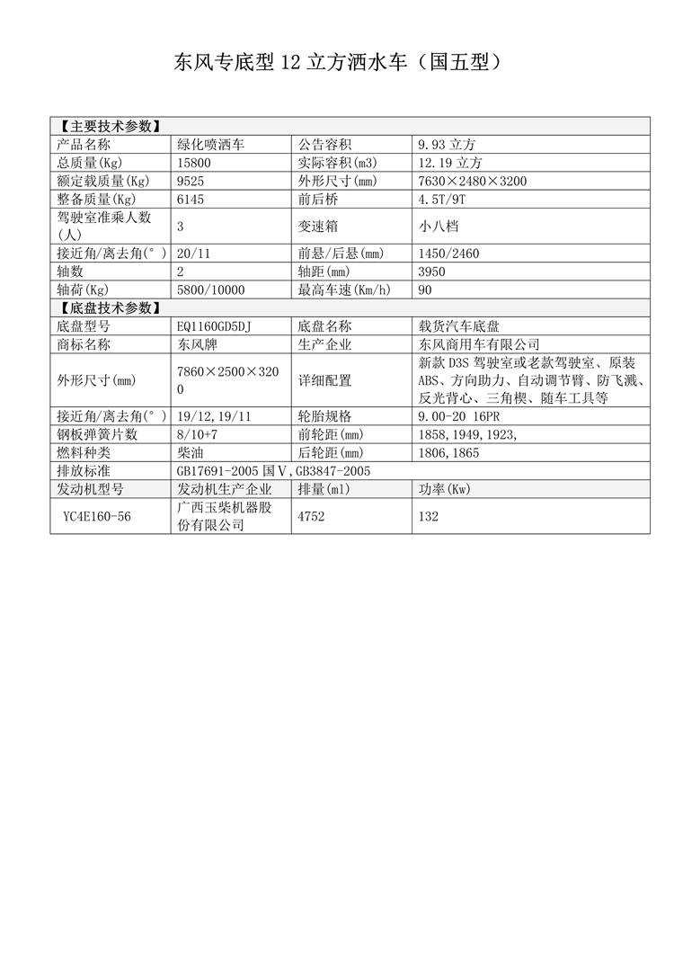 東風專底12立方灑水車